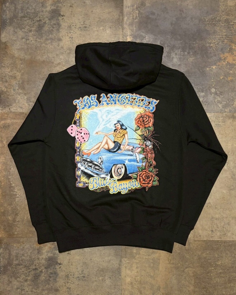 “Blue Bayou”がフロント・バックにインパクトあるフーディーとTシャツ。